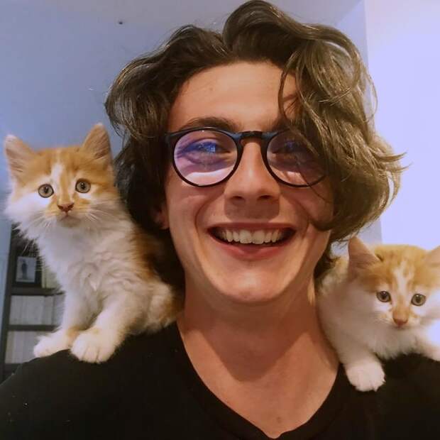 Разумеется, первыми на старт вышли кошки – им плечи ой как нравятся!