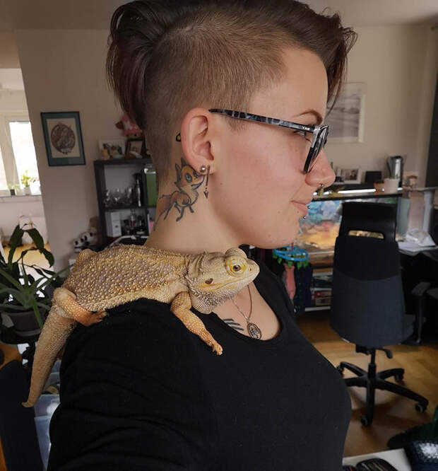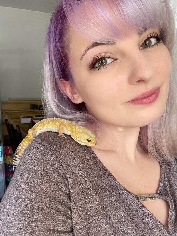 Геккон по кличке Кэтрин обожает делать гнезда в прическе хозяйки