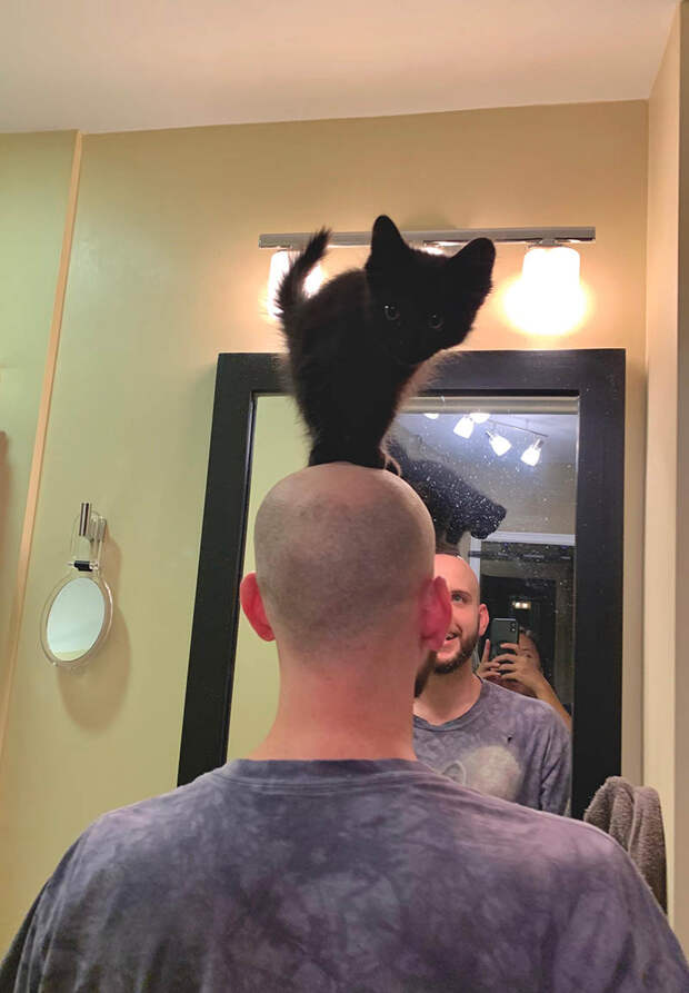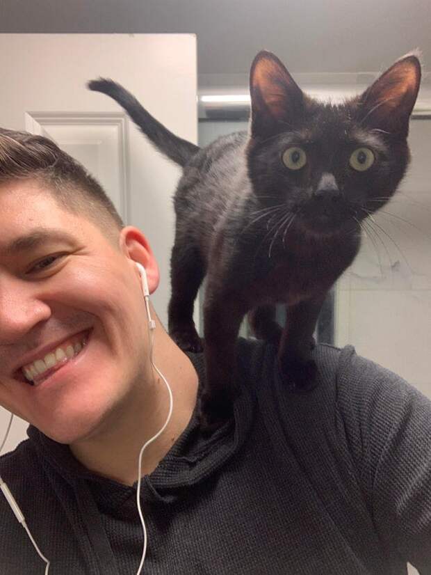Плечо, говорите? Кое-то уже на голову залез и собирается лапки свесить.